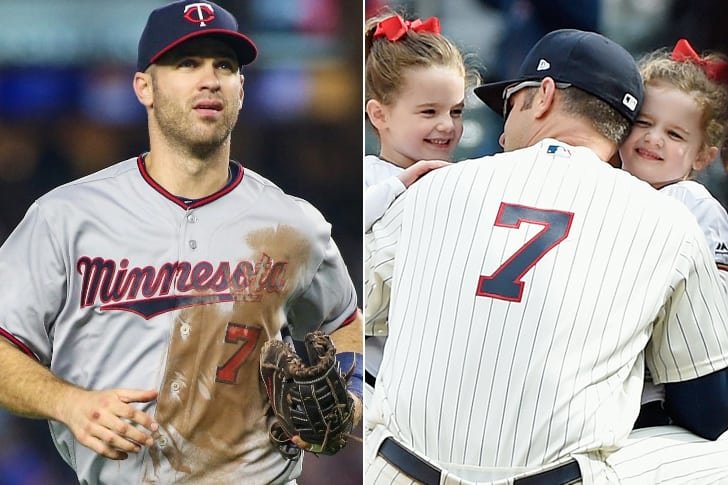 As of October 2018, the World Series has wrapped up and Joe Mauer is now a free agent. Mauer is now faced with the choice of either signing up again or retiring. At this point, he seems undecided. After 15 years in the MLB, it won’t be a surprise if he’d rather go into retirement. He takes with him many achievements, like being the only catcher in the history of MLB to have won three batting titles and also being the only catcher in the history of baseball to have won an American League batting title. Here he is pictured with his kids, Maren Virginia and Emily Teresa.