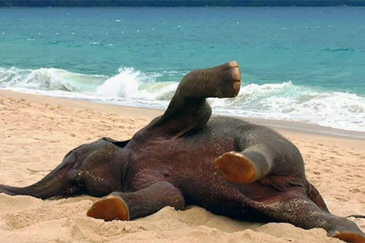 An einem sonnendurchfluteten Tag im thailändischen Inselidyll, wo Palmen sanft im Wind wiegen, spielt ein kleiner Elefant namens Lucky die Hauptrolle in unserem heutigen “Aww” -Moment. Voller Freude walzt sich der junge Dickhäuter im Sand und zeigt, dass Strandleben nicht nur für Zwei- sondern auch für Vierbeiner ein Traum sein kann.