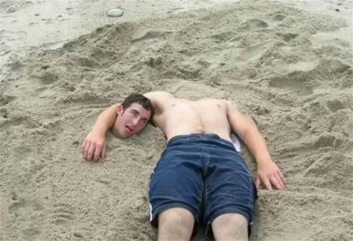 Wenn der Strand zum Schauplatz für kreative Streiche wird, dann darf man sich auf so manche Kuriosität gefasst machen. Dieses Foto liefert den Beweis, dass Strandurlaube nicht nur Sonnenbaden und Wellenreiten bedeuten müssen.