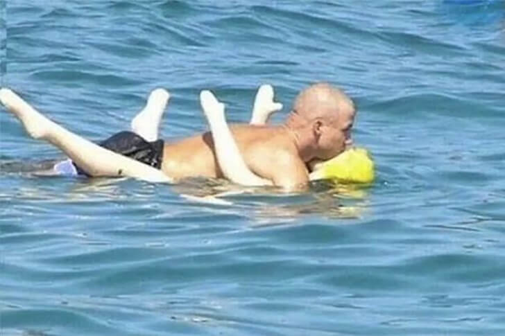 Der Mann scheint entweder nicht zu wissen, dass seine neue schwimmende Freundin eigentlich für CPR-Übungen vorgesehen ist, oder er besitzt einfach einen besonders trockenen Humor. Strandbesucher könnten leicht verwirrt sein: Sollen sie jetzt lernen, Leben zu retten oder sich einfach treiben zu lassen? Wenn jemand die Luft aus der Puppe lässt, ist das vielleicht nur der Auftakt für den nächsten Scherz …