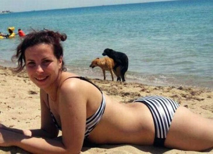Während unsere Sonnenanbeterin für die Linse strahlt, entscheiden sich zwei Hunde im Hintergrund dazu, ihrem Ruf der Natur auf eine Weise nachzukommen, die man intim nennen könnte. Das Ergebnis? Eine Photobombe der besonderen Art erinnert daran, dass wahre Liebe keine Kulisse scheut. Und die Moral von der Geschicht? Selbst im perfekten Urlaubssnap kann Liebe eine haarige Wendung nehmen!