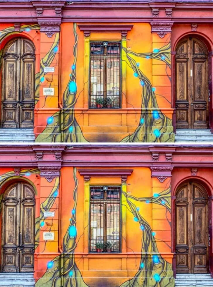 Sadly, the artist who painted this masterpiece isn’t well-known. Still, the details are mind-blowing and would have anyone enthralled. Let’s see if you can spot the two differences between the photos of the street art. A fair note of warning, though, the colors don’t help.