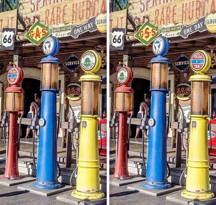 Nothing gives you a nostalgic dose like retro signs, antique gas pumps, and rustic architecture. So, next time you visit Disney’s California Adventure Park, you should look out for this gift shop. But for now, distract yourself from the details and see if you can notice four differences in the photos.