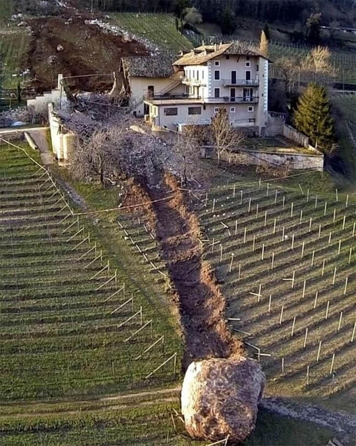 That’s exactly what happened to one homeowner, whose residence narrowly escaped being a rock’s final resting place. The boulder did carve a path of destruction through the lawn, but the real relief came from the few feet of space that spared the house from serious damage. What a way to rock the neighborhood!