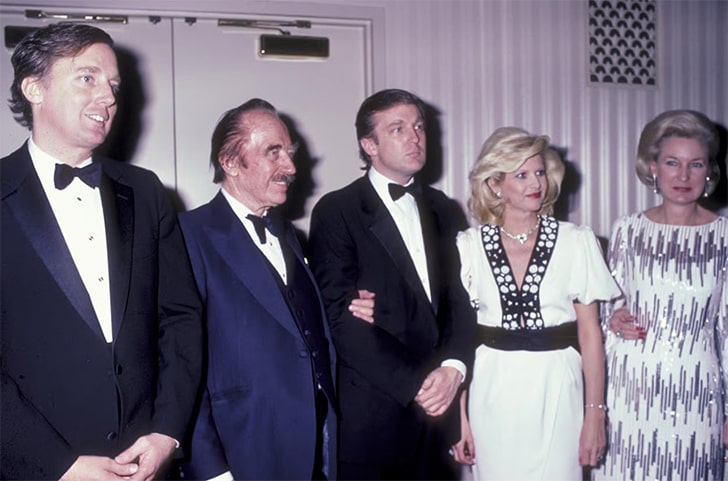 In this snapshot from 1985, Donald Trump and his wife Ivana are warmly greeted by Donald’s father, Fred Trump. The pride in Fred’s expression is visible as he looks on at Donald and Ivana, reflecting his joy at his son’s marital union.
