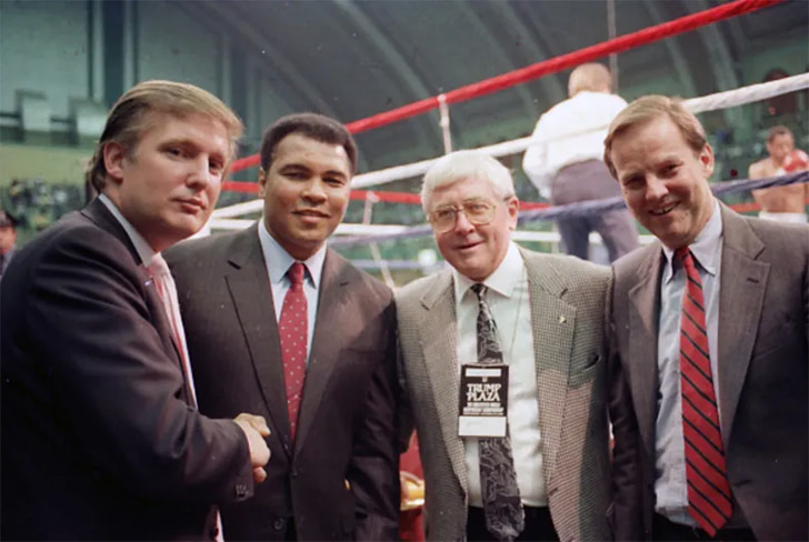 In a snapshot oozing with star power, Donald Trump is seen sharing a moment with the boxing legend Muhammad Ali. This encounter took place in Atlantic City, a venue synonymous with big events. Donald, always keen to mingle with influential figures, appears in his element alongside Muhammad, whose career was marked by unparalleled achievements such as three-time heavyweight champion titles and victories like the “Rumble in the Jungle” and “Thrilla in Manila.”