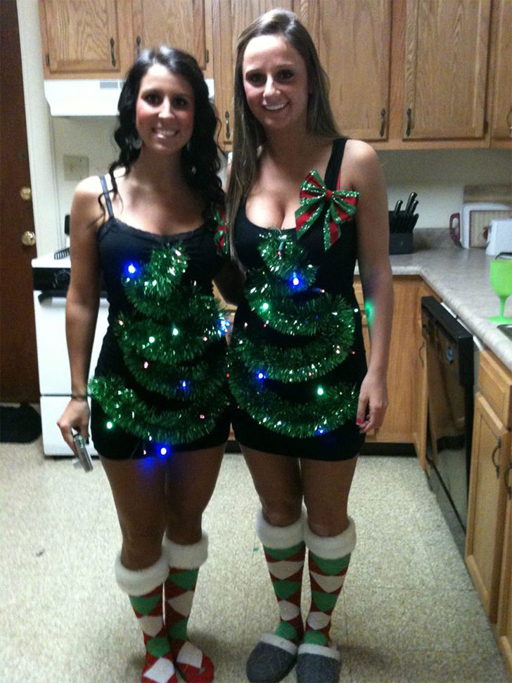 Two women have captured the internet’s heart with their ingenious Christmas-themed attire. Clad in sleek black dresses, they’ve transformed simplicity into spectacle by adorning themselves with green sparkly garlands, meticulously taped to create the silhouette of a Christmas tree right on their outfits.