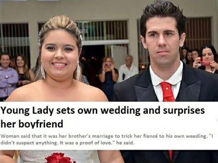 In this astonishing scene, a young lady orchestrates her own wedding as a surprise for her unsuspecting boyfriend, who believes he is attending her brother’s wedding. What a story! The groom, looking dazed and in a trance, told reporters he didn’t mind the bold gesture, viewing it as an act of love. If you say so.