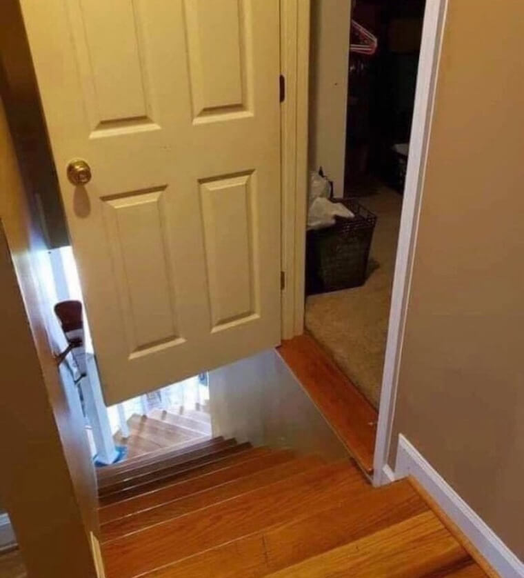 How was this home even planned in the first place? The stairs lead up to a bedroom, but instead of having a safe landing area, they end abruptly at the bedroom door. This means anyone exiting the bedroom faces a perilous drop onto the staircase. It’s like stepping out of bed and directly into an action movie stunt!