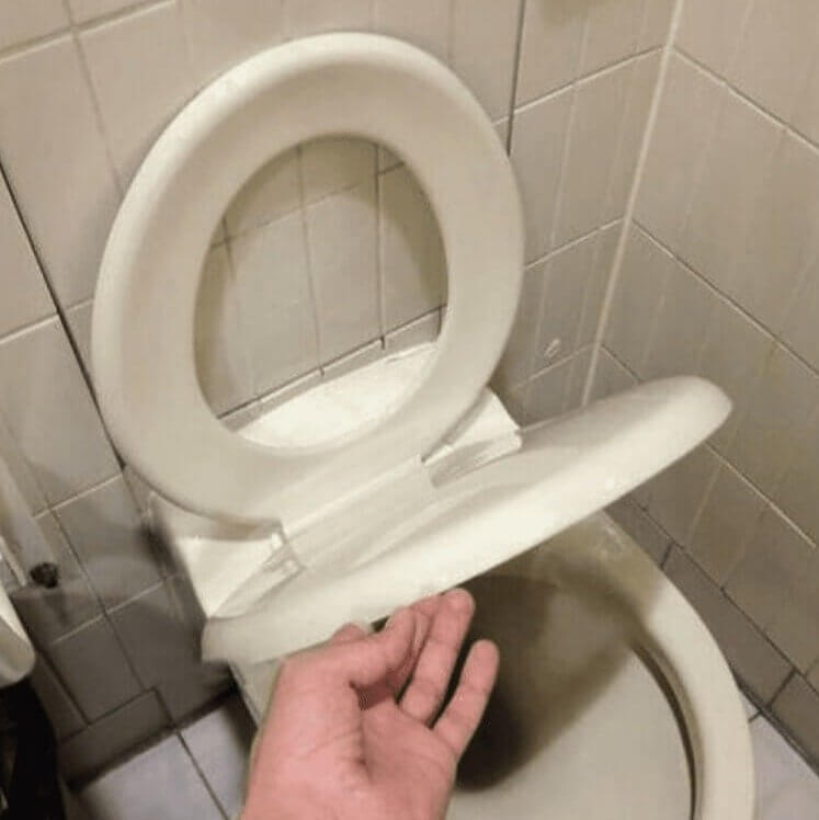 It seems someone’s DIY project took an amusing turn, landing squarely in the world of bathroom bloopers. Here, we have a toilet seat that’s installed backward. You lift the seat first and then the lid, which is not quite the order anyone expects. It’s as if the rules of gravity got reversed just in this tiny part of the house.
