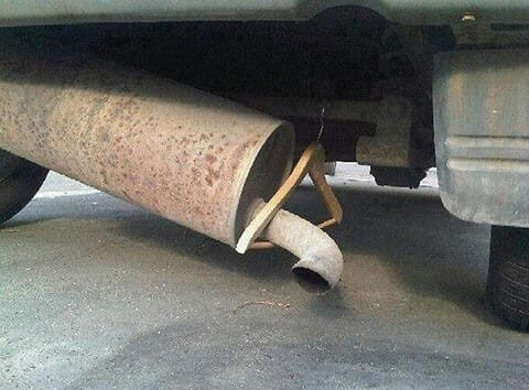 Someone’s taking the DIY approach to a whole new level! Rather than visiting a mechanic to fix their truck’s exhaust, they decided to hang in there—literally—by using a wooden clothes hanger to prop it up. This creative yet questionable solution might make MacGyver proud, but it’s a bit too reminiscent of a sitcom gag.