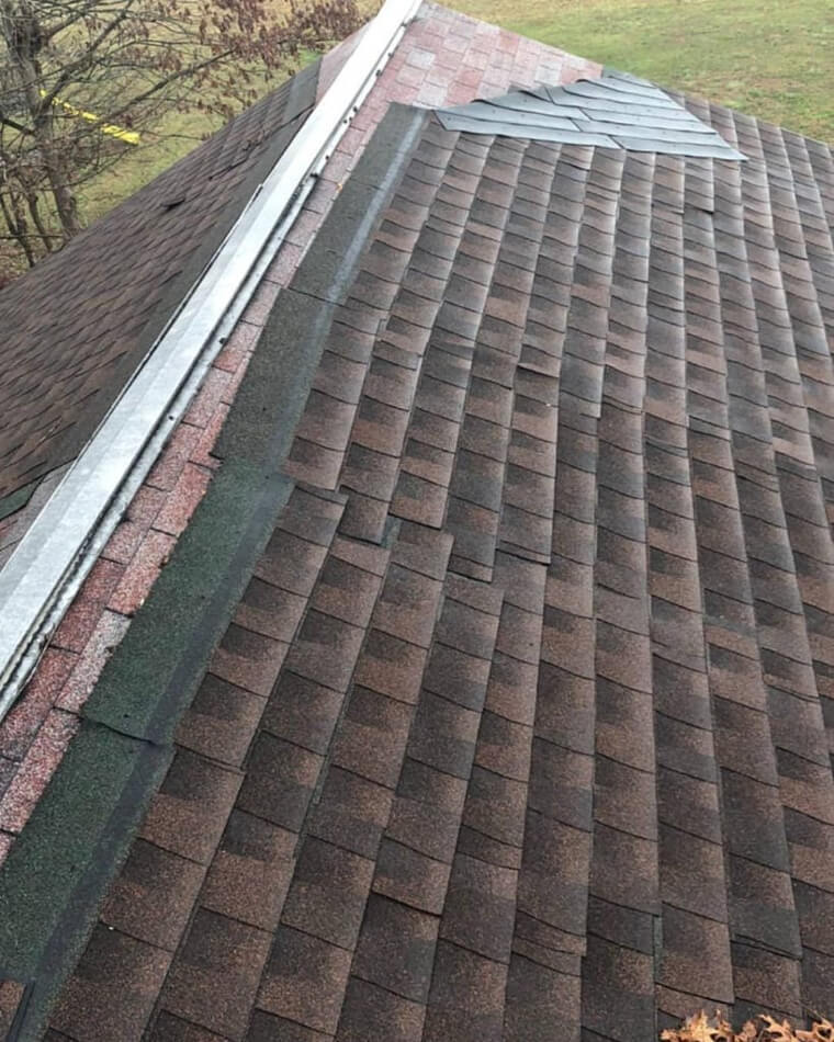 You don’t have to be a pro contractor to know that any home’s roof is crucial for keeping everything safe and dry. However, whoever attempted this roof repair clearly missed that memo! The roof is peeling away like a bad sunburn, creating a potential disaster waiting to happen.