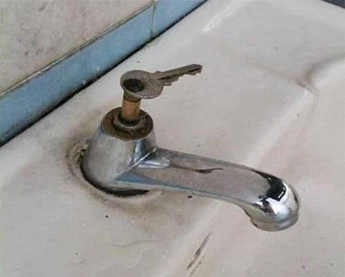A leaky tap can drive anyone up the wall with its incessant drip-drip-drip. But who would have thought to replace a broken faucet handle with a key? Yes—a key! This inventive DIYer decided instead of fixing the tap properly; they’d just jam a key in there and call it a day.