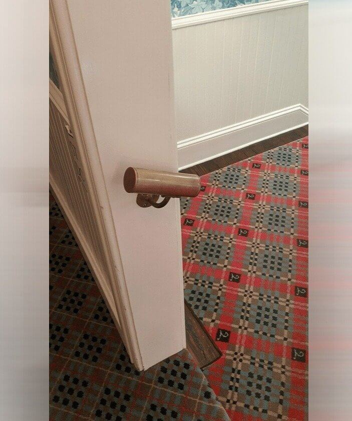 It’s like trying to steady yourself with a toothpick! This pint-sized rail seems more like a dollhouse decoration than a practical safety feature. One can’t help but wonder if a series of these mini-rails is dotted around the house, each more pointless than the last. Perhaps this homeowner was inspired by a “use it or lose it” mantra gone wrong.