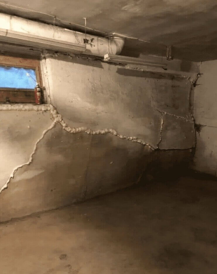 Whoever decided that a bit of foam spray could patch up a crumbling, water-logged wall must be a true optimist—or a fan of temporary fixes! This old wall has leaned in so much that it’s practically bowing out of the structure it’s supposed to support. It seems the wall is so eager to retire it’s leaning into its golden years early.
