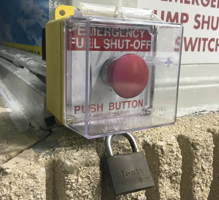 In a puzzling twist of safety protocol, someone has taken the term “emergency preparedness” to a comical extreme. The emergency fuel shut-off button, typically accessible in a split second, now sports a robust, clear plastic case sealed with a hefty lock! In the event of a real crisis, one can only imagine the frantic scavenger hunt for the elusive key.