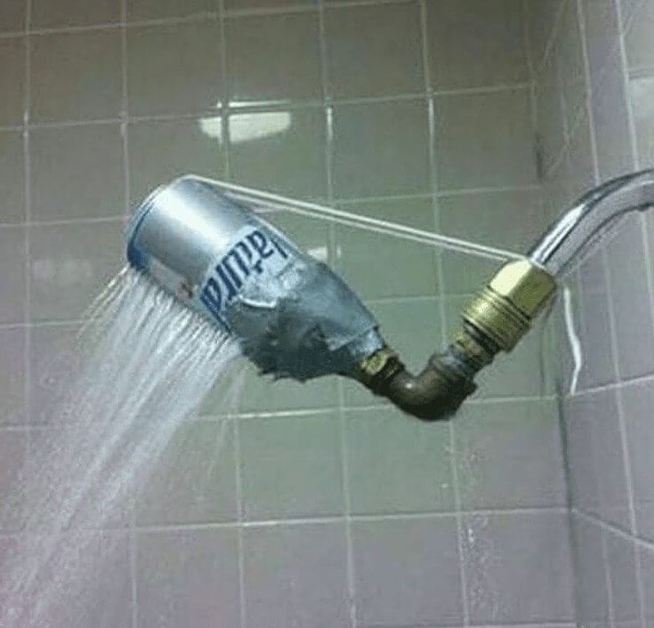 When the shower head broke and no replacement was in sight, this quick thinker turned to their inner genius. With a bit of duct tape, a drink can, and some creative ingenuity, they crafted an impromptu showerhead. Multiple holes punched into the aluminum can turned it into a makeshift water sprayer, all held up by a rope.