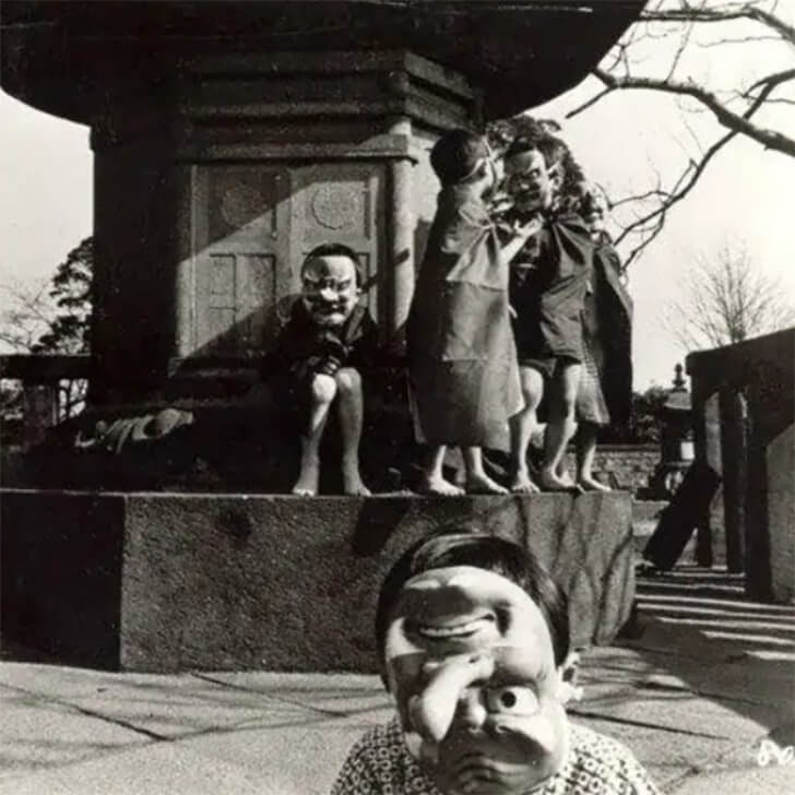 Sometimes, kids run amok while doing silly things, but this group of children congregated within the solemn confines of a temple. Their faces are concealed behind eerie demon-faced masks; an eerie aura envelopes them. The gnarled and grotesque masks cast an unsettling shadow upon their youthful innocence.