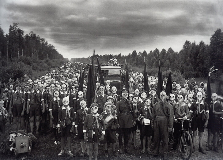 This chilling instance hails from the enigmatic Izu Islands Gas Mask Town, where residents once lived under the looming specter of volcanic activity. Each mask hides a story, a life suspended in perpetual vigilance against nature’s fury. The image exudes an uncanny blend of surrealism and dread, where human faces become mere shadows of their former selves.