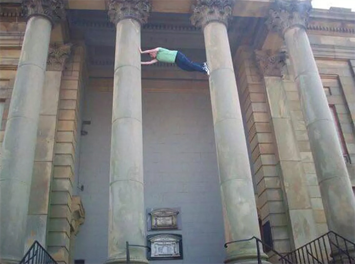 The safest way down is a controlled reversal of his climb, with a buddy or two ready to guide or catch him should his grip falter. This architectural embrace, while impressive, is a stark reminder of the thin line between bold adventure and a call for help. Next time, a ladder might suffice for high-flying ambitions, leaving the pillars for support rather than sport.