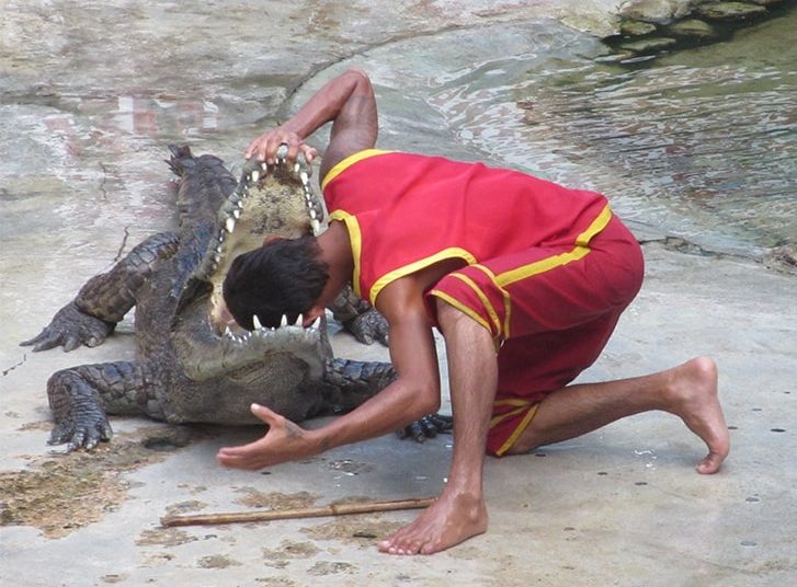 In a heart-stopping display of bravery (or is it bravado?), a young boy takes wildlife exploration to the extreme by turning a crocodile dentist. There he is, head confidently inside the gaping jaws of a crocodile, perhaps checking for cavities or simply marveling at the creature’s dental architecture.