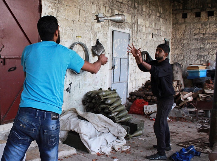 Two dudes engage in a high-stakes game of “Missile Toss,” hurling warheads the size of footballs like they’re playing catch at a picnic. Is it a game, you ask? Well, sort of. Picture it: amidst a pile of missiles in the corner, these daredevils have turned weapon handling into a bizarre blend of sport and spectacle.